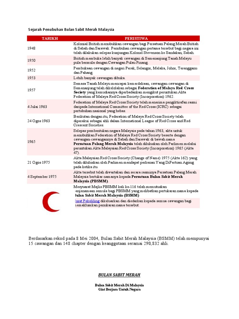 Sejarah bulan sabit merah. 2 pada bulan november 1876 turki yang sedang berperang dengan russiaselama enam bulan tiba tiba mengumumkan kepada majlis persekutuanswiss sebagai penjaga konvensyen geneva bahawa lambang palang merahmenghina kepercayaan agama anggota anggota tenteranya dan oleh yangdemikian mereka akan menggunakan lambang bulan sabit merah untukperkhidmatan ambulans mereka. Sejarah bulan sabit merah antarabangsa dan malaysia slideshare uses cookies to improve functionality and performance and to provide you with relevant advertising. Kombatan dan penduduk sipil yang berada di bawah penguasaan pihak lawan berhak untuk memperoleh penghormatan atas hidup harga diri hak pribadi keyakinan politik agama dan keyakinan lainnya.