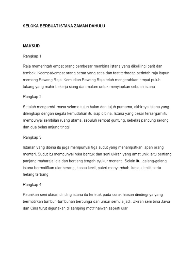 Seloka Berbuat Istana Zaman Dahulu Docx