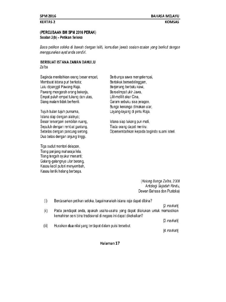 Esei Dan Komsas Tingkatan 4 Dan 5 Spm Antologi Sejadah Rindu Puisi Tradisional Berbuat Istana Zaman Dahulu Za Ba