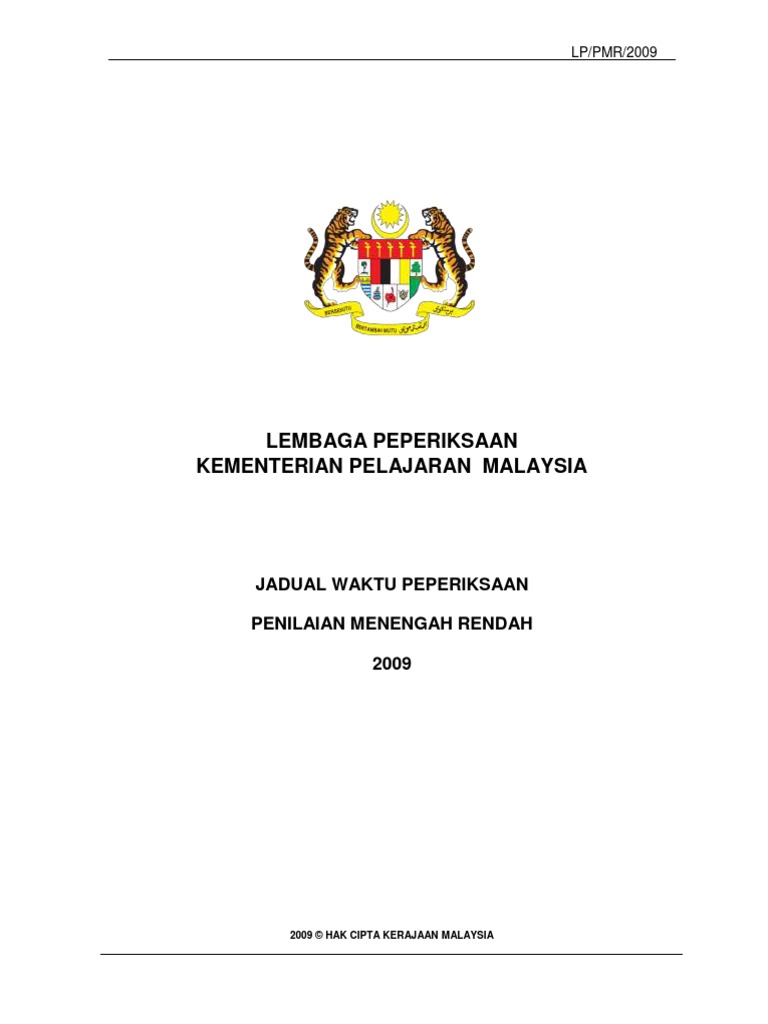 Jadual Waktu Pmr 2009