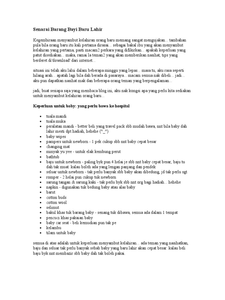 Baru Lahir List Barang Baby