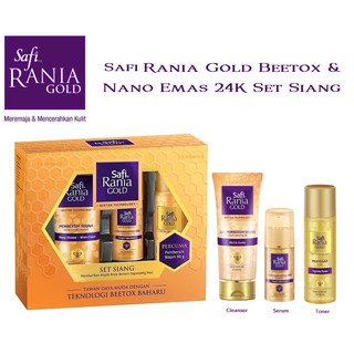 Set lengkap safi rania gold. Diperhebat dengan formulasi baharu bio nano emas 24k dan protein sutera ia berupaya meremajakan sel kulit agar kemunculan tanda tanda penuaan pramatang dapat diatasi wajah akan tampil cerah muda dan berseri. Set rangkaian safi rania gold beetox technology set rangkaian safi rania gold beetox technology ada banyak produk. Set siang set siang ade toner dgn serum pencuci muka siang tu dpt free aje.