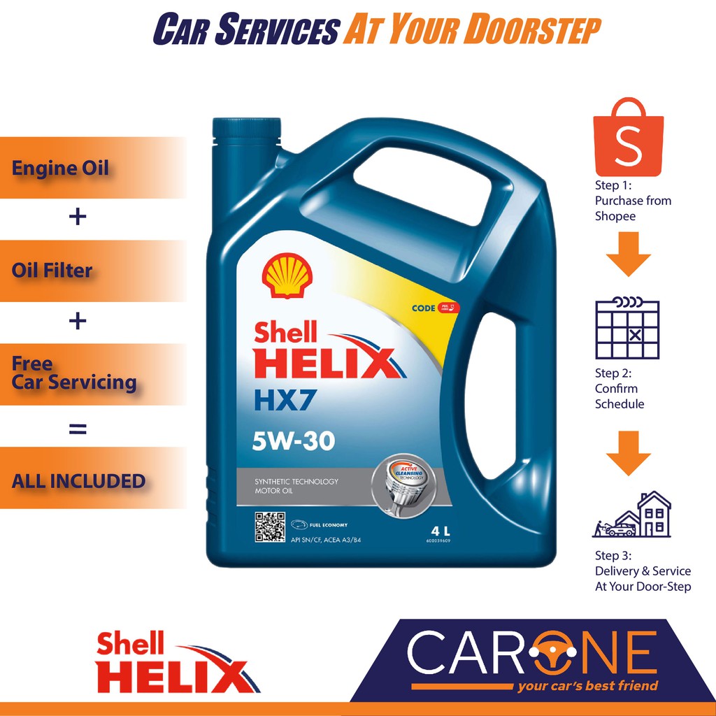 Shell Helix Hx7 5w30 Semi Synthetic Engine Oil Oil Filter Carone Service Anywhere Klang Valley Penang Only Shopee Malaysia
