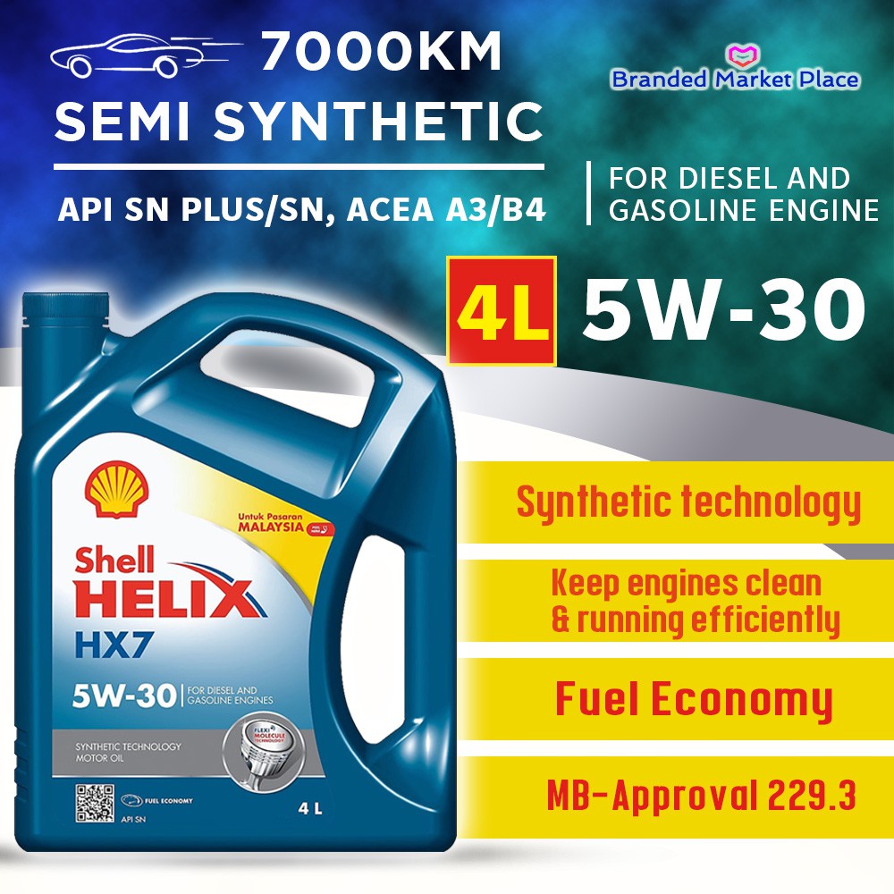 Shell Helix Hx7 X 5w30 Semi Synthetic Engine Oil Motor Oil 4l Api Sn Plus Sn Enhanced Fuel Economy Shopee Malaysia