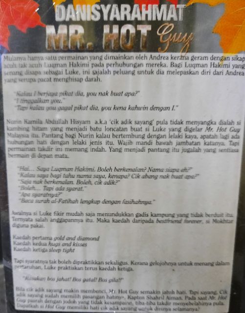 Sinopsis novel mr hot guy. Bet my heart. Siapa sangka siapa menduga ianya berakhir dengan tercetusnya rasa cinta sebenar. Richest man looking for love.