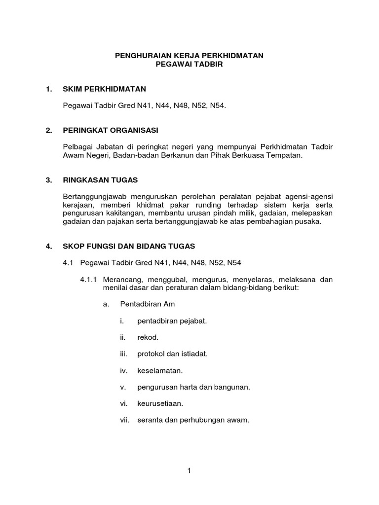 Penghuraian kerja perkhidmatan pegawai tadbir 1. Sumber portal spa. Skop kerja pegawai tadbir n41.