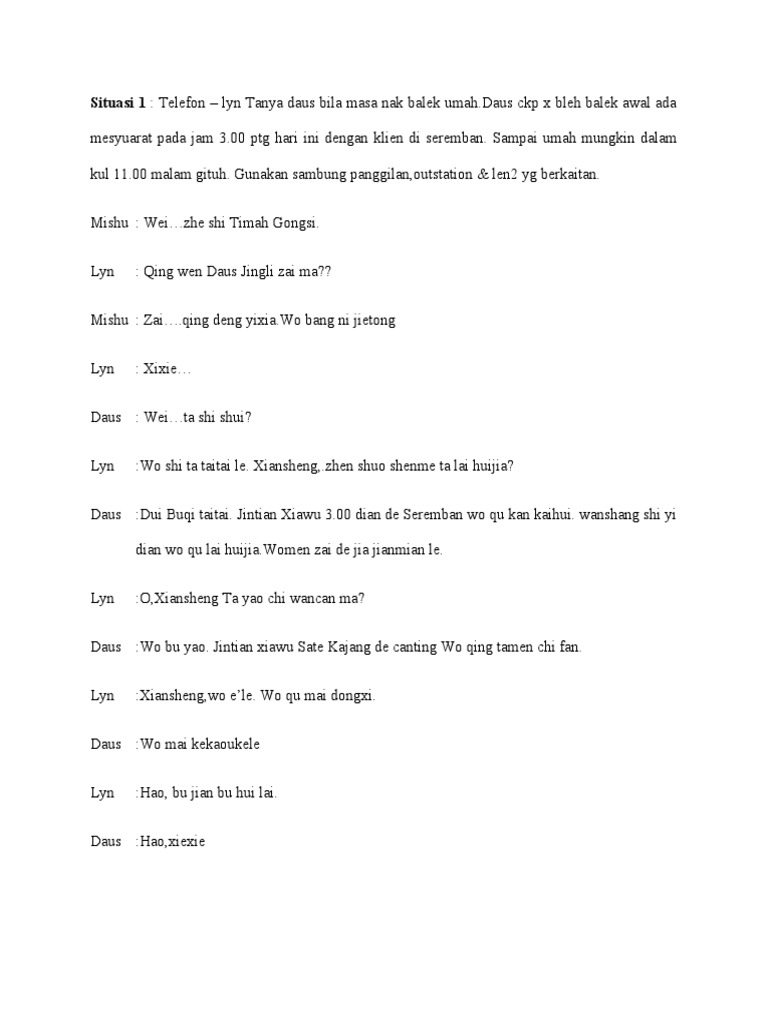 Mandarin script level 2 docx. Final script of mandarin level 2 tmc 451 ect2ma no. Dialog bahasa mandarin perbualan 1 slideshare uses cookies to improve functionality and performance and to provide you with relevant advertising.