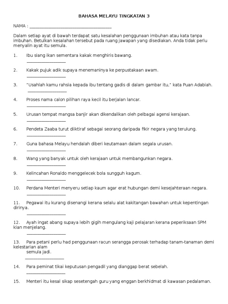 Bahasa Melayu Tingkatan 3