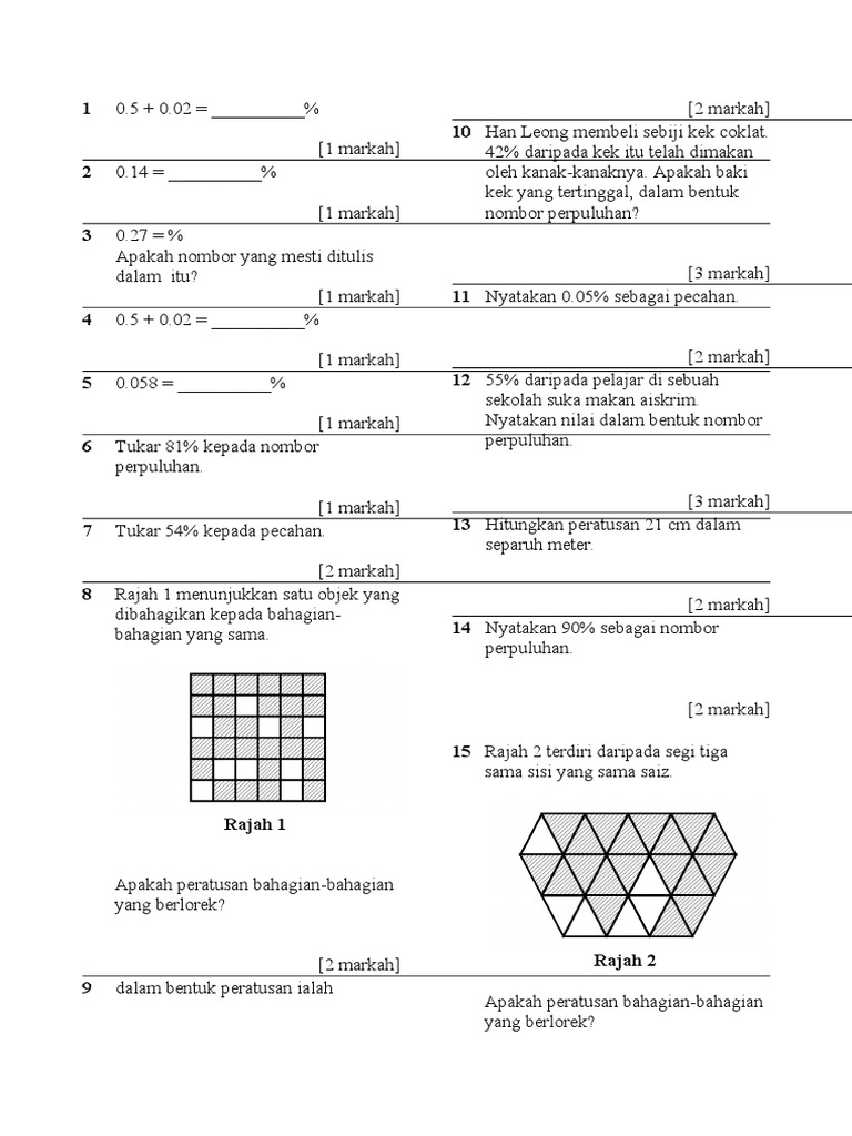 Soalan Matematik Tahun 5 Peratus Persoalan N