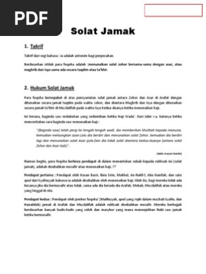 Melakukan solat secara jama bukan hanya berlaku kepada orang yang bermusafir sahaja. Solat jamak dan qasar boleh dilakukan apabila perjalanan seorang musafir tidak kurang daripada 60 batu atau 92 kilometer km. Cara solat jamak selalunya di hentian r r lebuh raya utara selatan plus kita biasa nampak tatacara panduan dan cara solat jamak dan qasar di dinding surau.