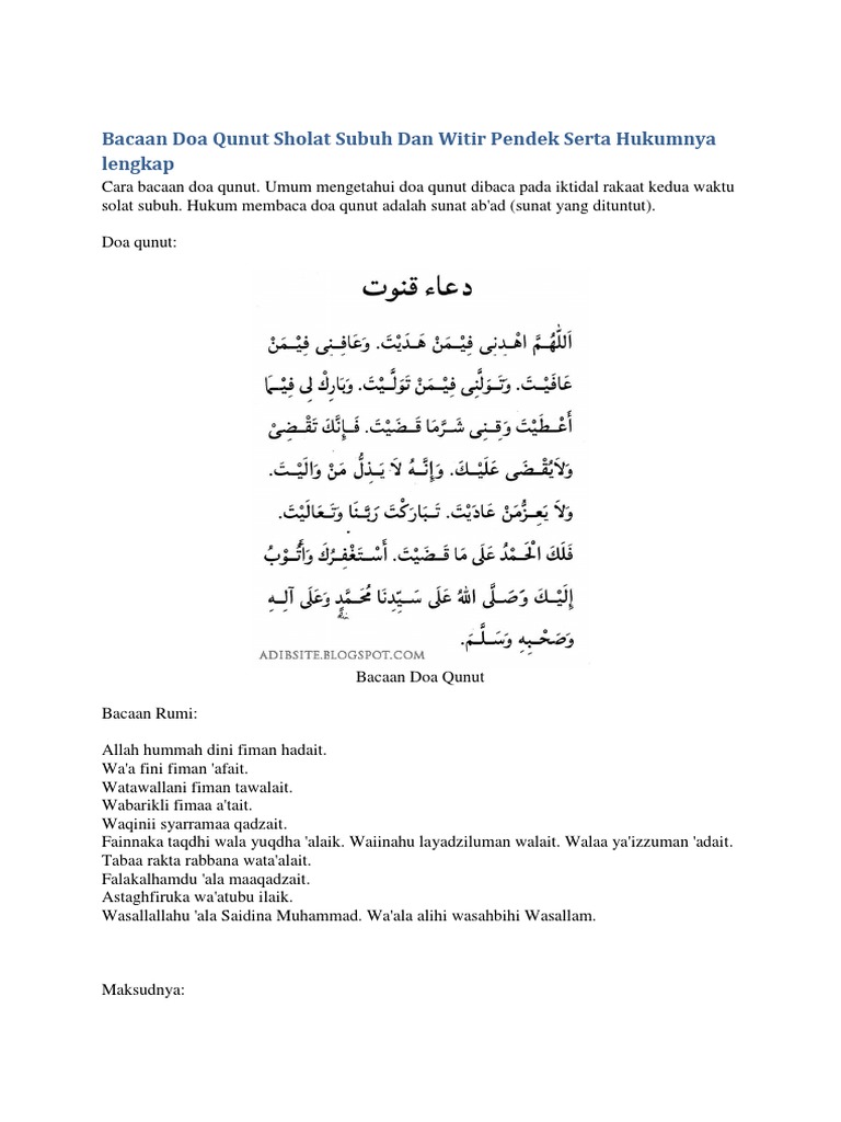 Solat Subuh Doa Qunut Pendek Contoh Soal Dan Materi Pelajaran 1
