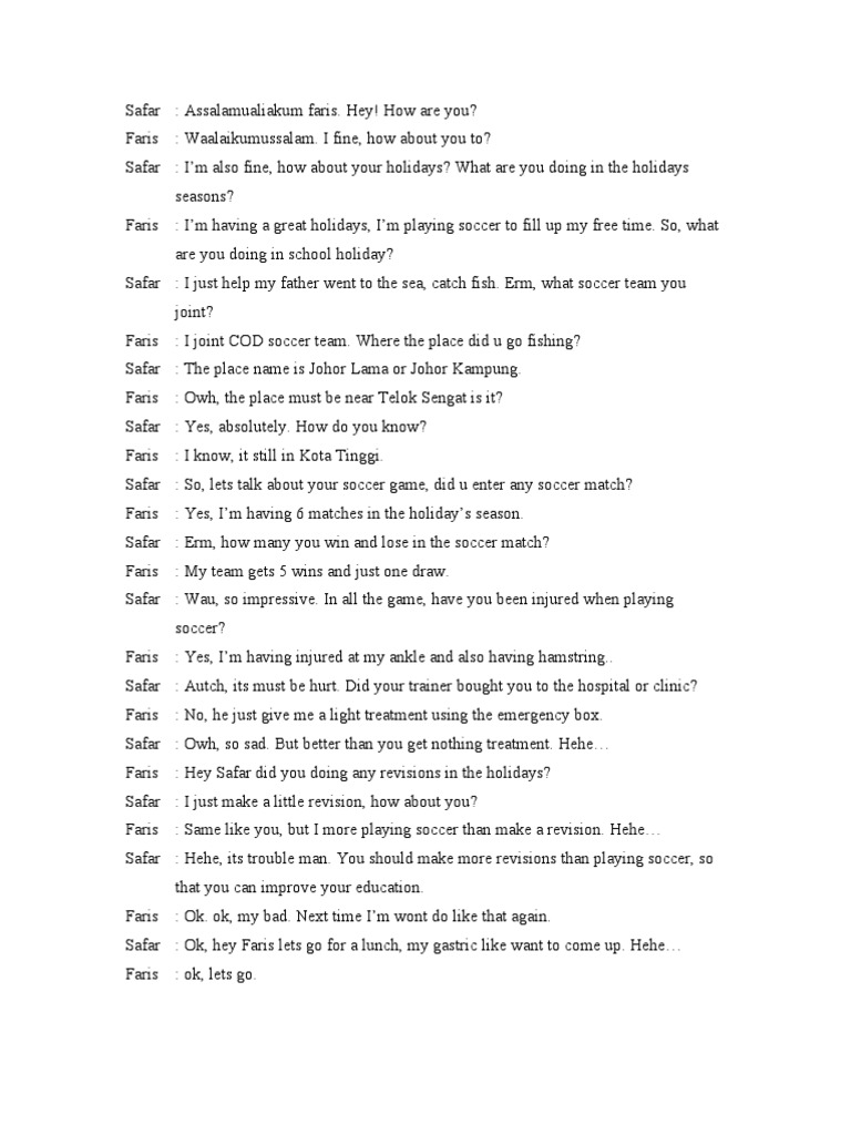 Dialogue Essay For Oral Test 4 Person