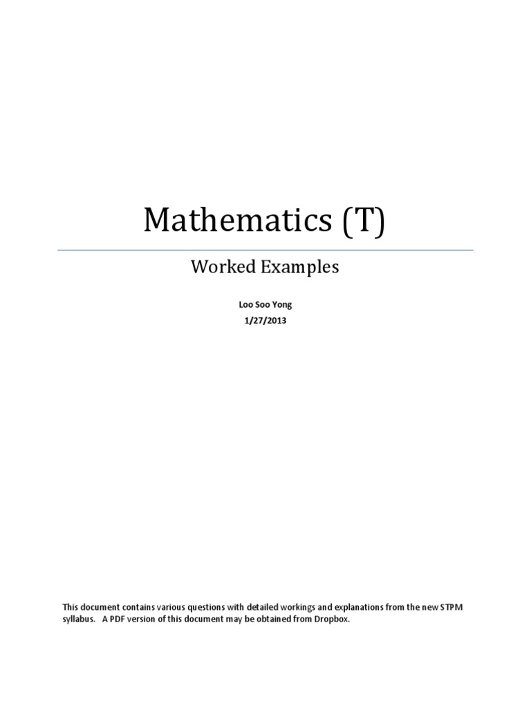 Stpm mathematics t notes pdf. Stpm mathematics t a level trigonometry. Oxford fajar mathematics t stpm full wor pdf chapter 13 u0007 focus on exam 13 1 a draft 10 4 9 11 7 5 12 5 4 13 4 2 14 5 2 15 8 16 0 2 10 4 4 11 5 7 12 0. Download stpm mathematics t term 1 term 2 and term 3 past year questions here.