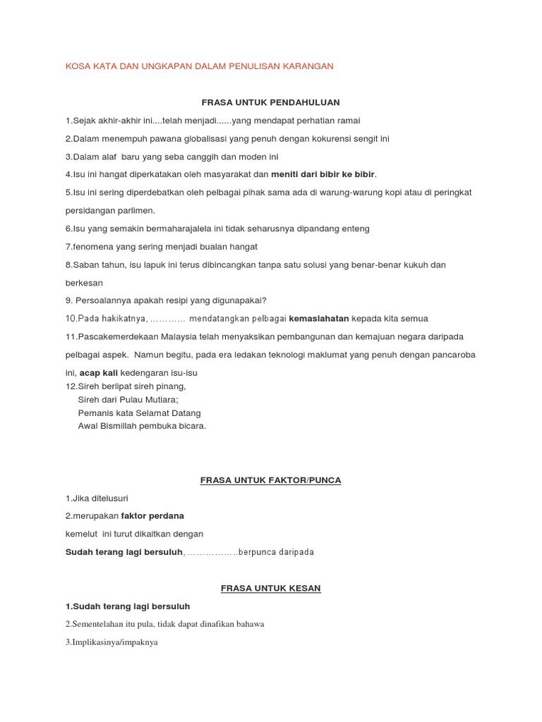 Kosa Kata Dan Ungkapan Dalam Penulisan Karangan