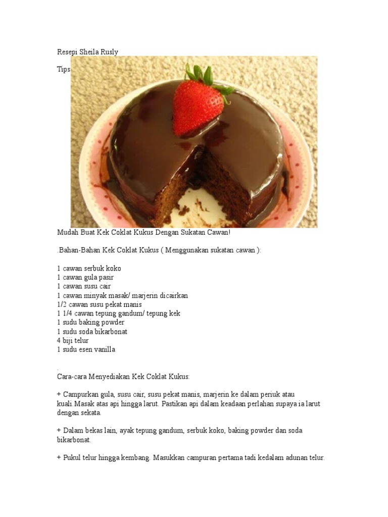 Resepi Kek Coklat Sheila Rusly