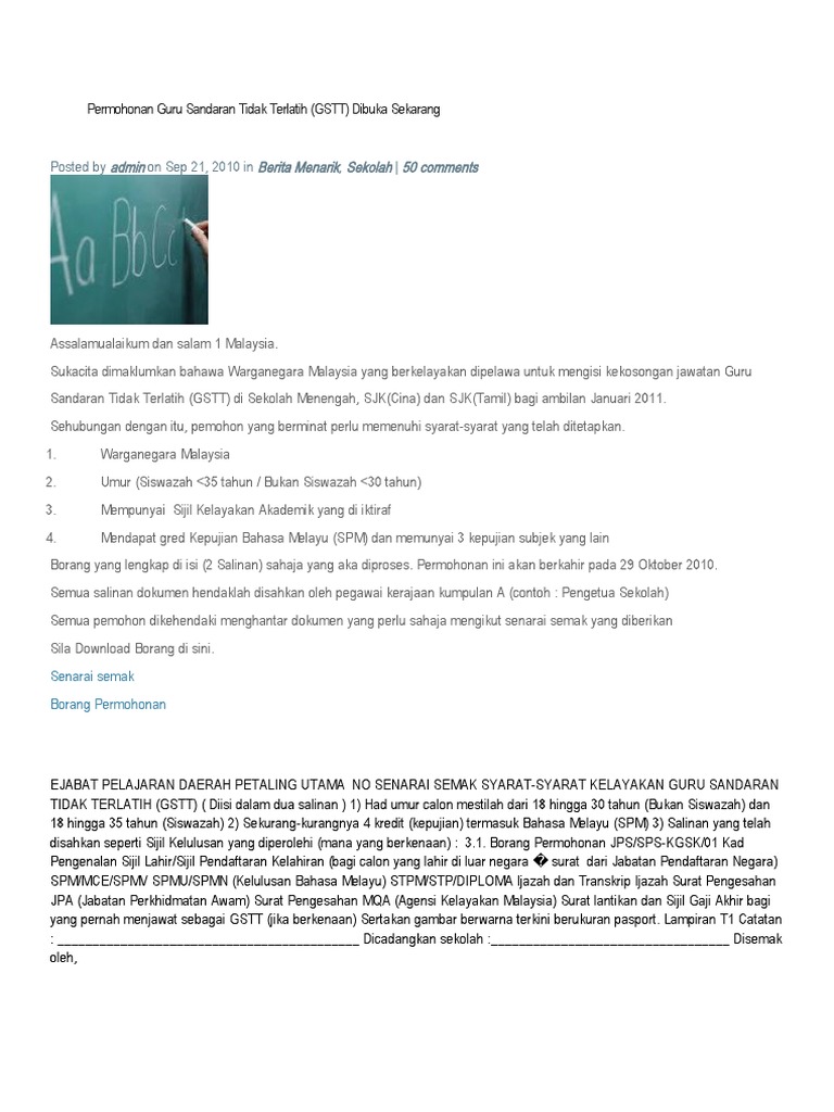 Syarat Dan Kelayakan Jawatan Guru Sandaran Tidak Terlatih Gstt Pendidikanmalaysia Com