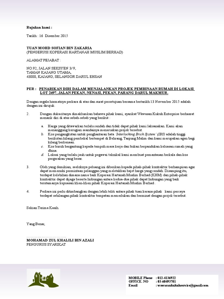 Contoh Surat Tunjuk Minat Projek Pembinaan