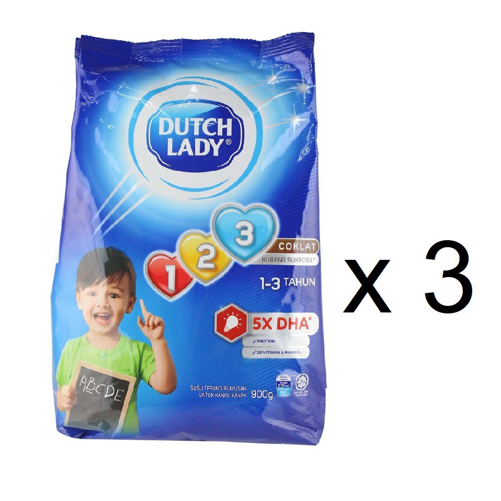 Dutch Lady 123 900g X 3 3 Flavours Susu Dutch Lady 123 Umur 1 Hingga 3 Tahun 1 To 3 Years Old Honey Chocolate Plain Shopee Malaysia
