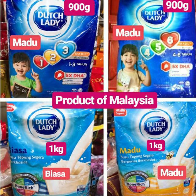 Varian Susu Bubuk Dutch Lady 123 456 Dutchlady Biasa Plain Vanilla Madu Malaysia Shopee Indonesia