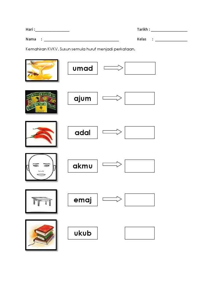 Susun perkataan supaya menjadi ayat yang betul 1. Berkunjung shu heng pasar malam. Semoga latihan soal ini dapat bermanfaat dan dapat melatih putra putri anda mengasah kemampuan berpikirnya dalam menyusun dan mencocokkan kata nama yang telah tersusun.