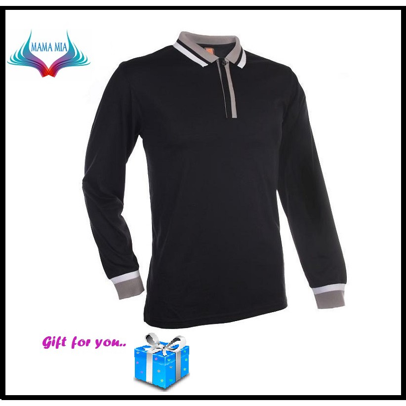 Baju Kolar Long Sleeve Lengan Panjang Oren Sport Sj05 Black Shopee Malaysia