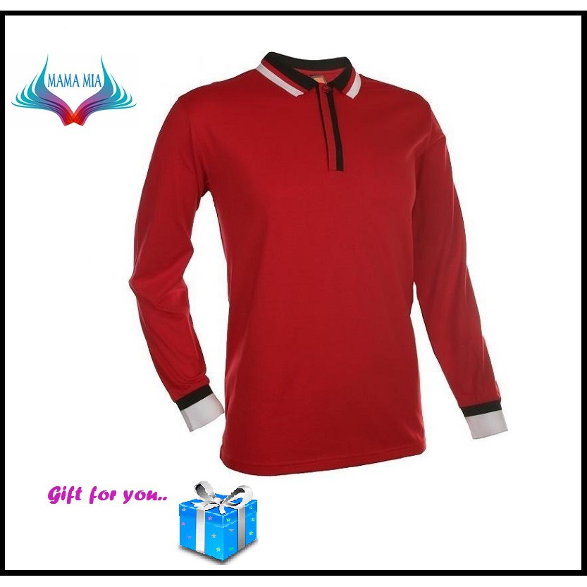 Baju Berkolar Long Sleeve Lengan Panjang Oren Sport Sj05 Red Shopee Malaysia