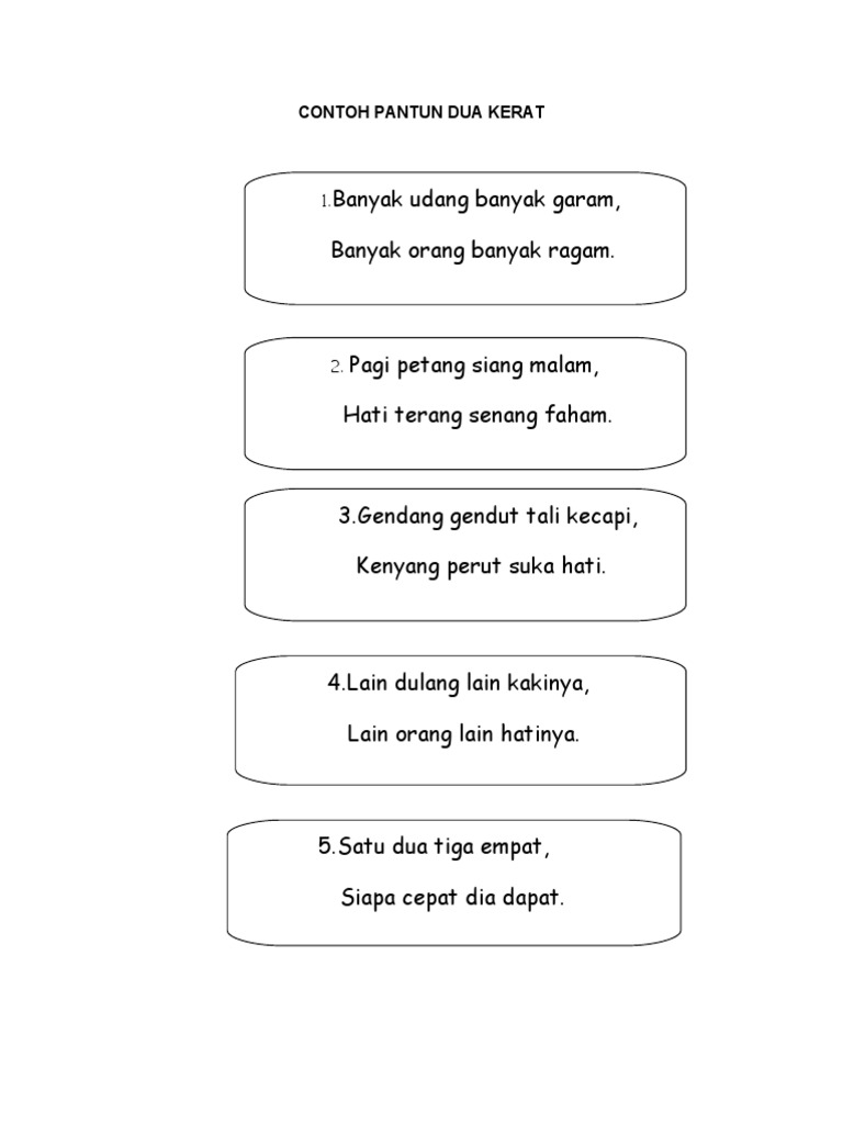 Contoh Pantun Dua Kerat