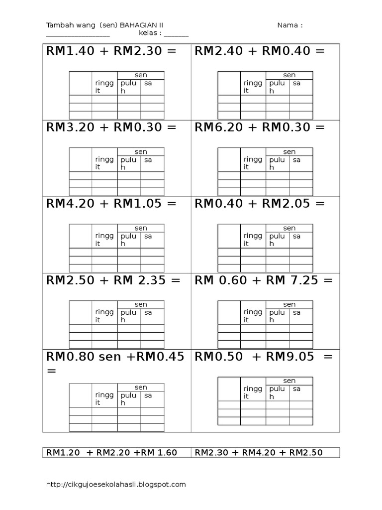 Lembaran Kerja Matematik Tahun 1 Duit Doc