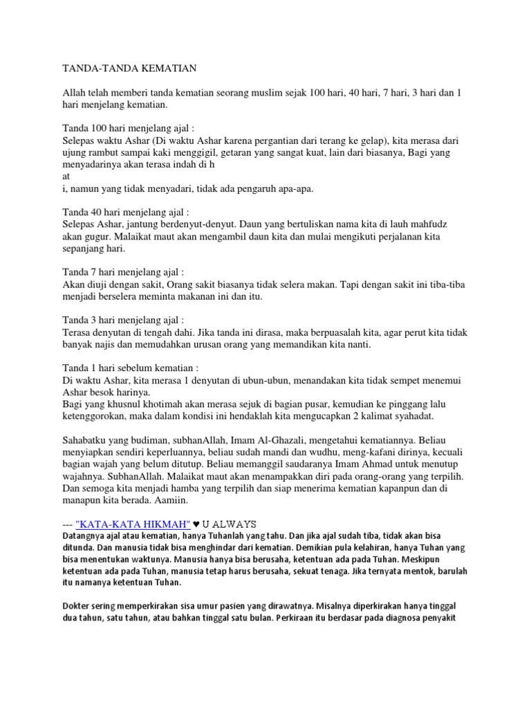 100 Hari Tanda Orang Akan Meninggal Infosuba Org