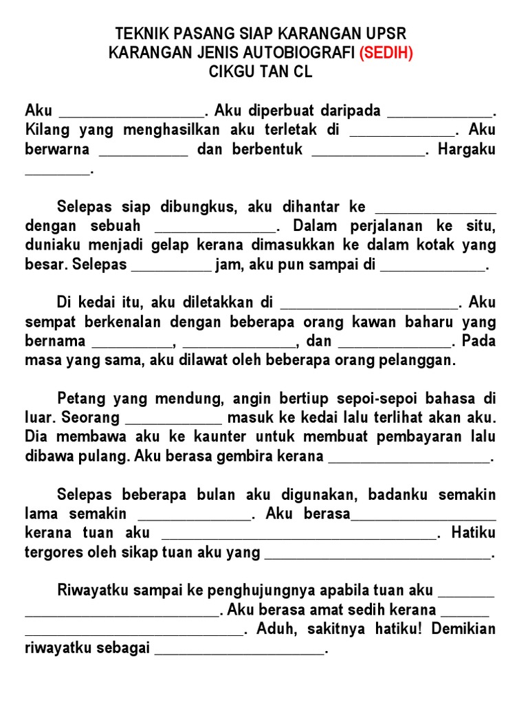 Teknik Pasang Siap Karangan Upsr Autobiografi