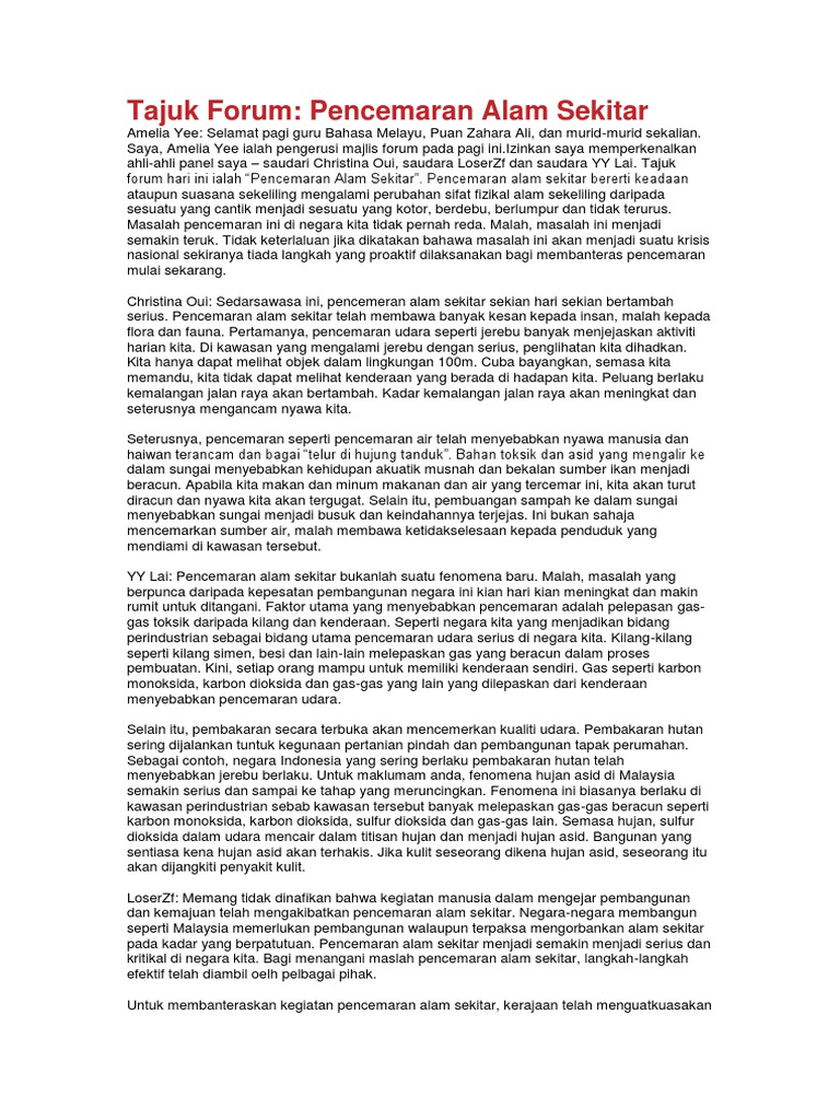 Contoh teks forum alam sekitar malaysia contoh teks forum alam sekitar semulajadi contoh teks forum alam sekitar karangan contoh teks forum alam sekitar dan. Melestari alam sekitar mutakhir ini arus modenisasi menderaskan lagi pembangunan negara.