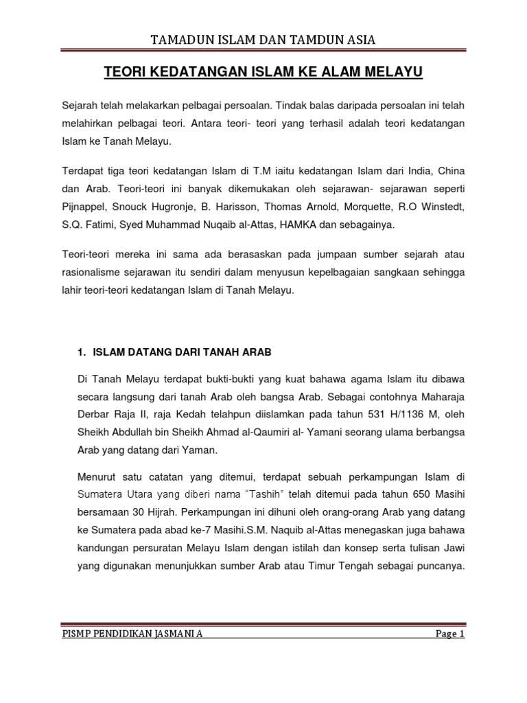 Doc Teori Kedatangan Islam Ke Tanah Melayu Muhammad Khairi Academia Edu