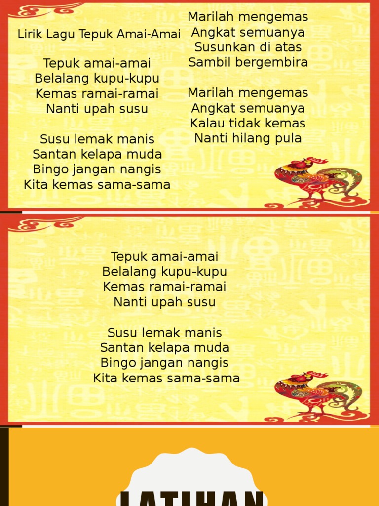 Tepuk amai amai belalang kupu kupu tepuk ramai ramai emak upah susu susu lemak manis santan kelapa muda adik jangan nangis emak ada kerja tepukamaiamai lag. I have been revisiting all those nursery rhymes and lullabies that i once admired. Tepuk amai amai belalang kupu kupu bayar duit aku yang semua kau sapu kambing biri biri sudah datang dari jawa mana kau nak lari bawa duit tu kemana buai laju laju buai sampai pokok sena bayar hutang itu takut nanti kau merana memanda fasola tikam di tapak kakinya dah memang kau salah ku taboh kau pun tak apa.
