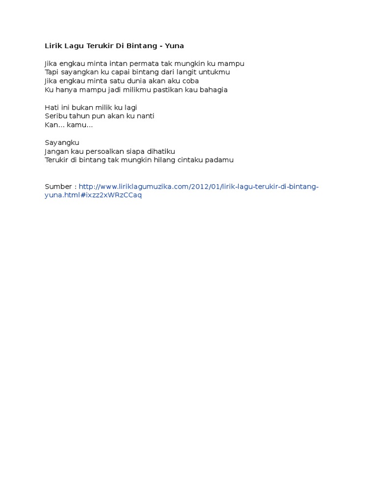 Terukir Di Bintang Yuna Lirik Lagu Youtube