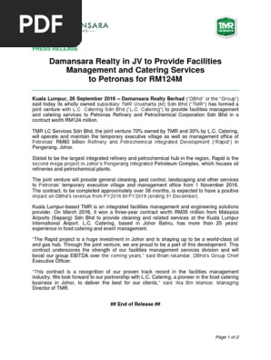 Taman johor jaya johor bahru johor. Tmr lc services sdn bhd the joint venture 70 owned by tmr and 30 by l c. The jv company tmr lc services sdn bhd is to provide facilities management and catering services to petronas refinery and petrochemical corporation sdn bhd.